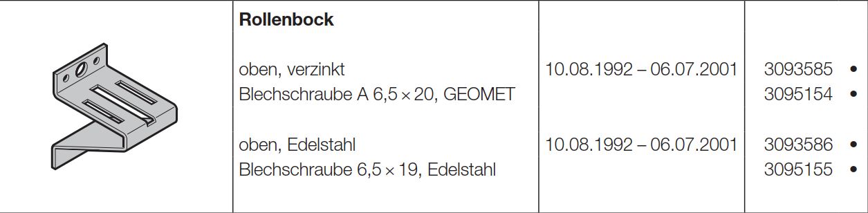 Hörmann Rollenbock oben Beschlag H für Baureihe 30-40 und Industrie-Baureihe 30-40-50 Edelstahl