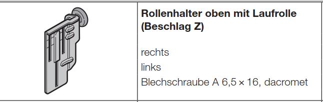 Hörmann Rollenhalter oben links, mit Laufrolle, 3047260, für Baureihe 40
