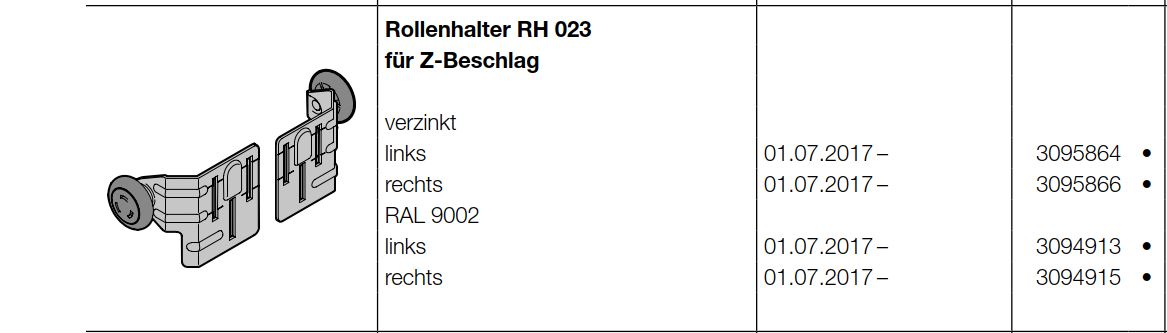 Hörmann Rollenhalter RH 023, für Z Beschlag, links, Baureihe 40, LPU 67 Thermo