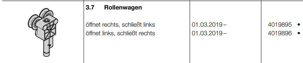 Hörmann Rollenwagen, 4019895, HST42, öffnet rechts / schließt links, Seiten-Sektionaltore BR 30