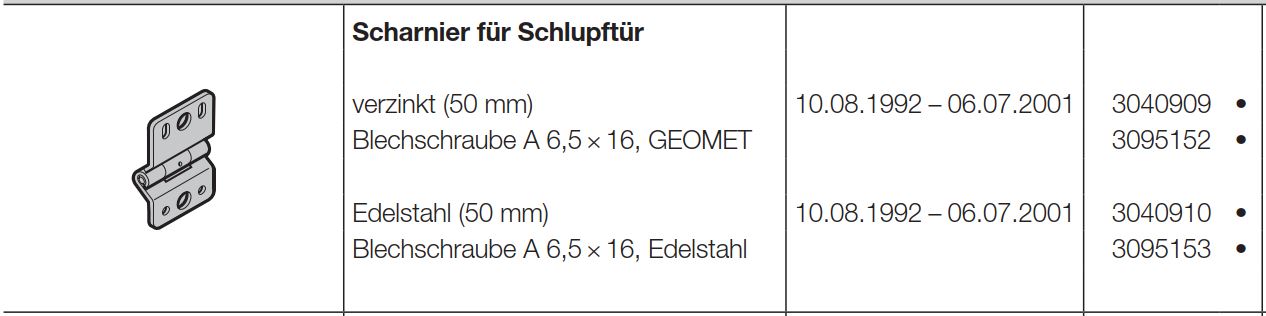 Hörmann Scharnier für die Schlupftür 50 mm Edelstahl für Baureihe 40 und Industrie-Baureihe 30-40 und 50