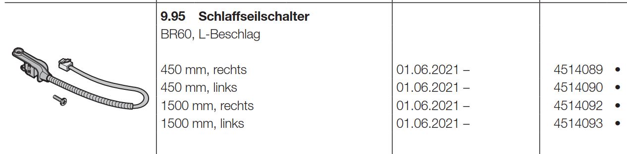 Hörmann Schlaffseilschalter Baureihe 60, L-Beschlag, Länge 15000 mm rechts