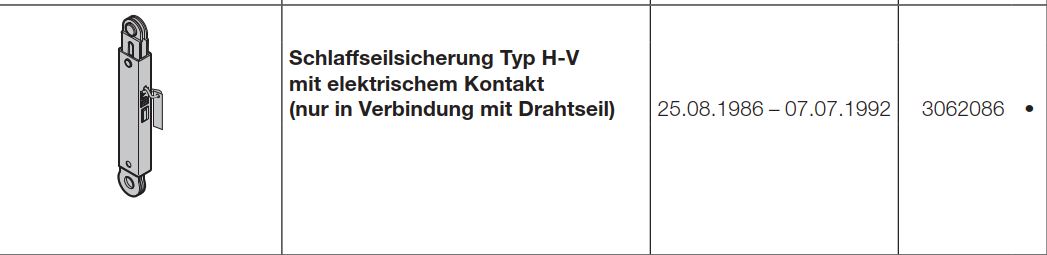 Hörmann Schlaffseilsicherung Typ H-V mit elektrischem Kontakt nur in Verbindung mit Drahtseil Industrietor 20 er Baureihe