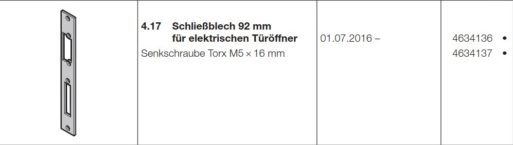Hörmann Schließblech 92 mm für elektrischen Türöffner, für Doppelgaragen-Schwingtor N 500