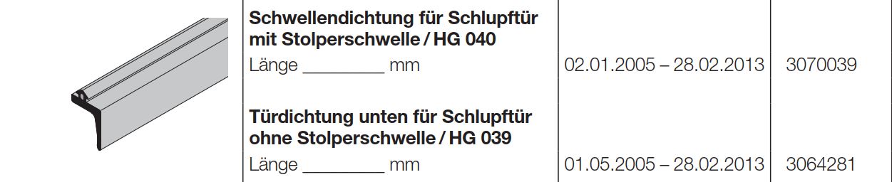 Hörmann Schwellendichtung für Schlupftür mit Stolperschwelle HG 040 Baureihe 40