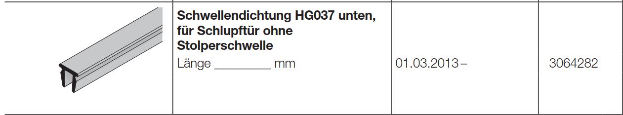 Hörmann Schwellendichtung HG037 unten für Schlupftür ohne Stolperschwelle Baureihe 50