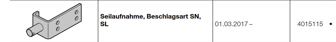 Hörmann Seilaufnahme, Beschlagsart SN, SL, Baureihe 40