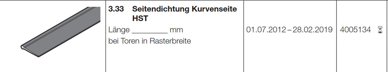 Hörmann Seitendichtung Kurvenseite HST, Seiten-Sektionaltor
