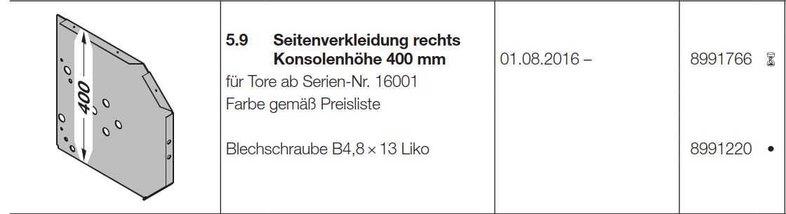 Hörmann Seitenverkleidung rechts Konsolenhöhe 400 mm HG 75 TD