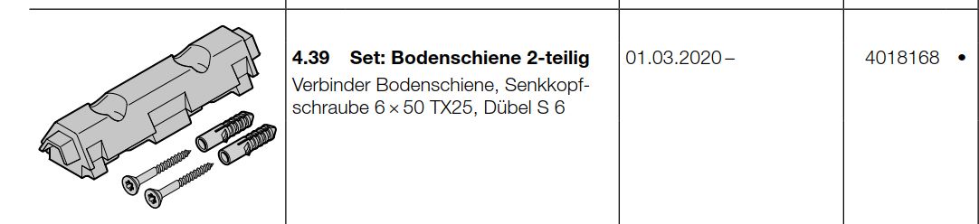 Hörmann Set: Bodenschiene 2-teilig, (HST 42), BR 20, Seiten-Sektionaltor