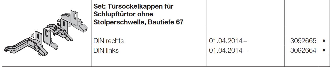 Hörmann Set Türsockelkappen für Schlupftürtor ohne Stolperschwelle Bautiefe 67 DIN links Baureihe 50