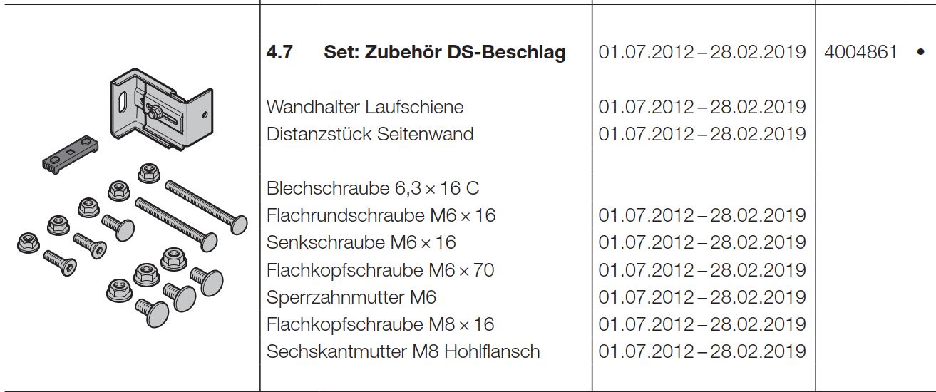 Hörmann Set: Zubehör DS-Beschlag, (HST42), Seiten-Sektionaltor