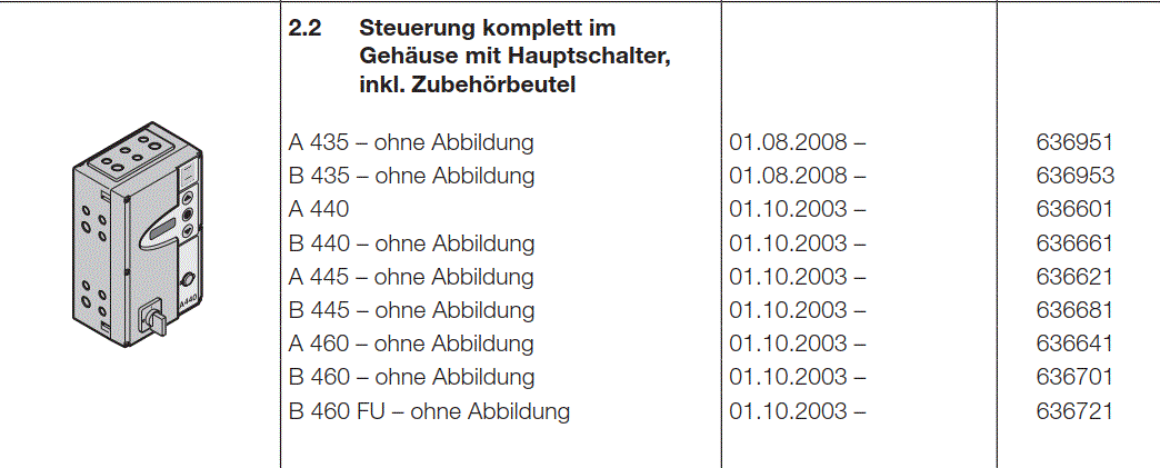 Hörmann Steuerung komplett im Gehäuse mit Hauptschalter inkl. Zubehörbeutel für B 460 FU