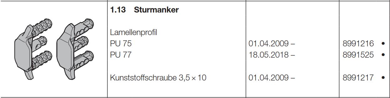 Hörmann Sturmanker für Lamellenprofil PU75