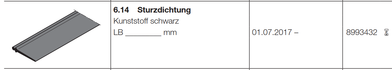 Hörmann Sturzdichtung für Garagen-Deckenlauftor RollMatic OD