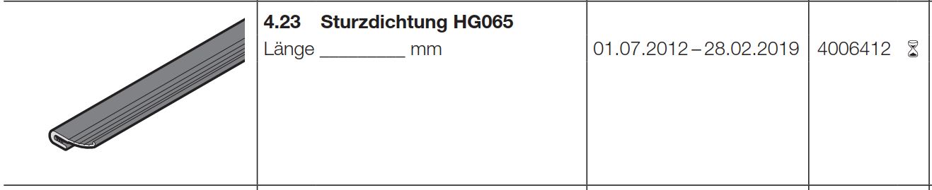 Hörmann Sturzdichtung HG065 (HST42) BR10, Seiten-Sektionaltor
