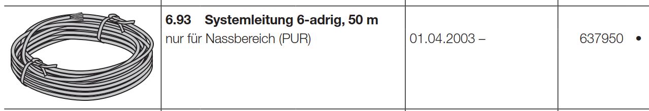 Hörmann Systemleitung 6-adrig 50 m nur für Nassbereich (PUR)