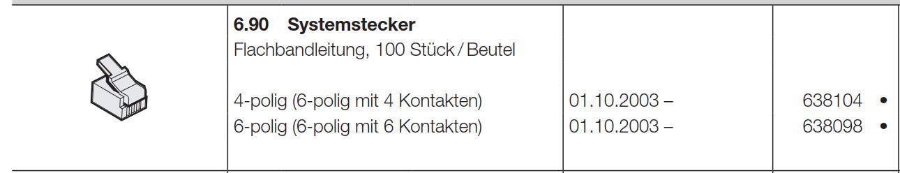 Hörmann Systemstecker Flachbandleitung 100 Stück-Beutel 6-polig 6-polig mit 6 Kontakten
