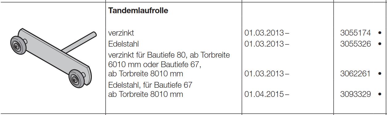 Hörmann Tandemlaufrolle verzinkt für Bautiefe 80 für die Baureihe 50