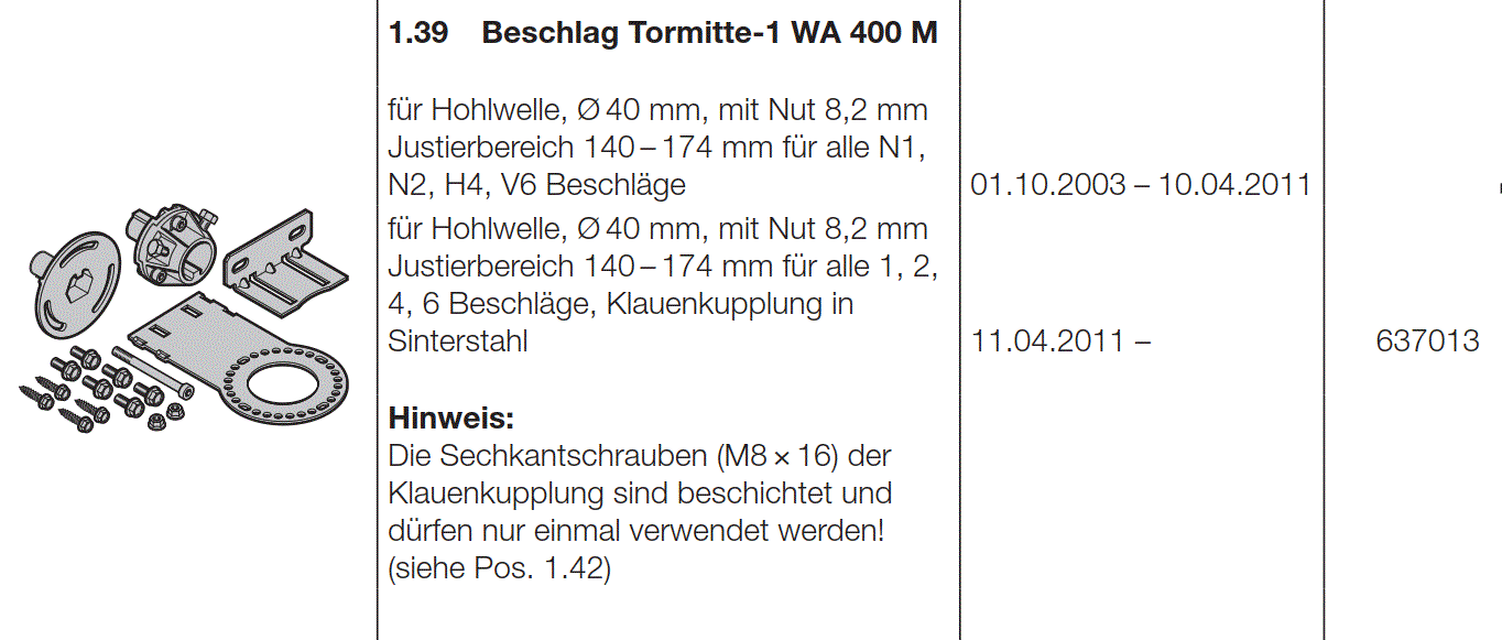 Hörmann Torbeschlag Tormitte-1 WA 400 M / 500 M