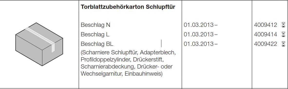 Hörmann Torblatt Zubehörkarton Schlupftür Beschlag L, Baureihe 40