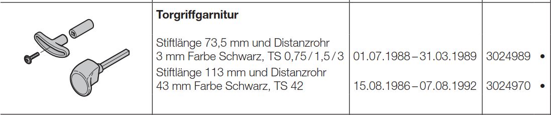 Hörmann Torgriffgarnitur Stiftlänge 113 mm und Distanzrohr 43 mm TS 42 Farbe Schwarz