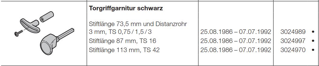 Hörmann Torgriffgarnitur Stiftlänge 87 mm der Baureihe 20