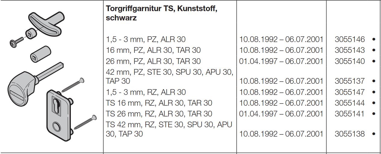 Hörmann Torgriffgarnitur TS-Kunststoff-schwarz 16 mm PZ-ALR 30-TAR 30 für die Industrietor Baureihen 30, 40
