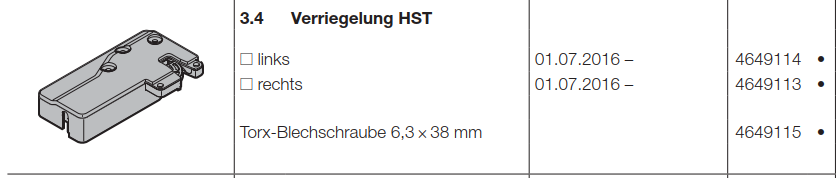 Hörmann Verriegelung HST rechts, Doppelgaragen-Schwingtor N 500