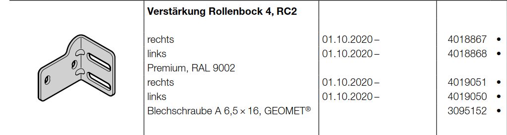 Hörmann Verstärkung Rollenbock 4, RC2 links, für Baureihe 40 (Privattore)