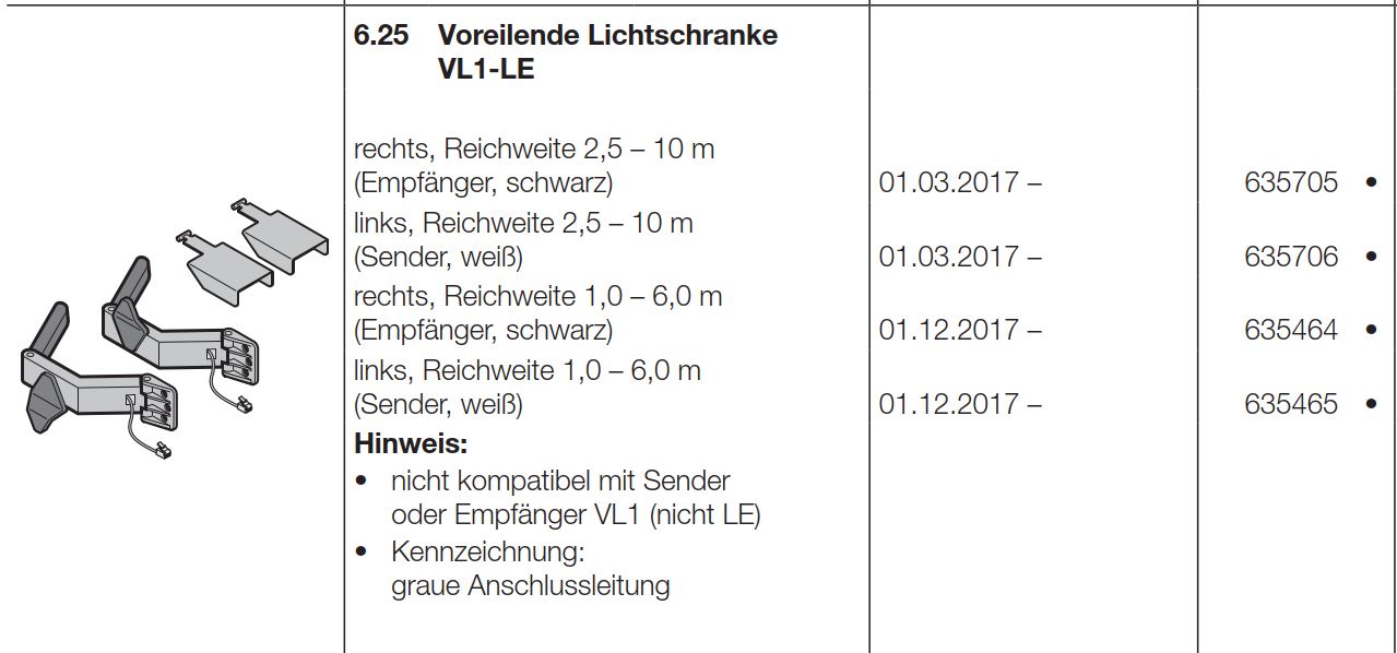 Hörmann voreilende Lichtschranke VL1 LE links Reichweite 2,5–10 m Sender weiß