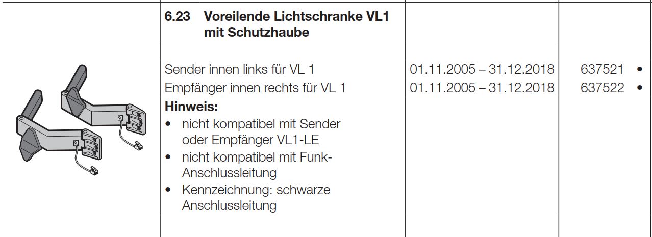 Hörmann voreilende Lichtschranke VL1 mit Schutzhaube Sender innen links für VL 1