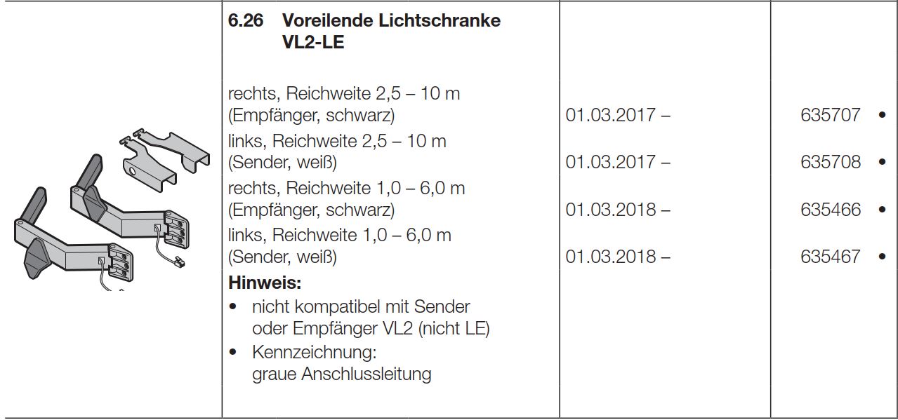 Hörmann voreilende Lichtschranke VL2 LE rechts Reichweite 2,5–10 m-Empfänger schwarz