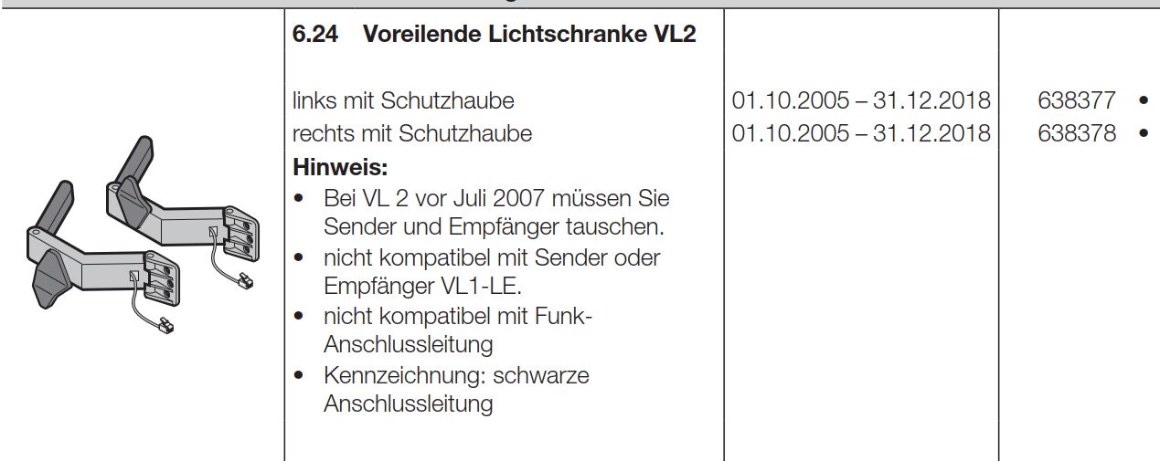 Hörmann voreilende Lichtschranke VL2 rechts mit Schutzhaube
