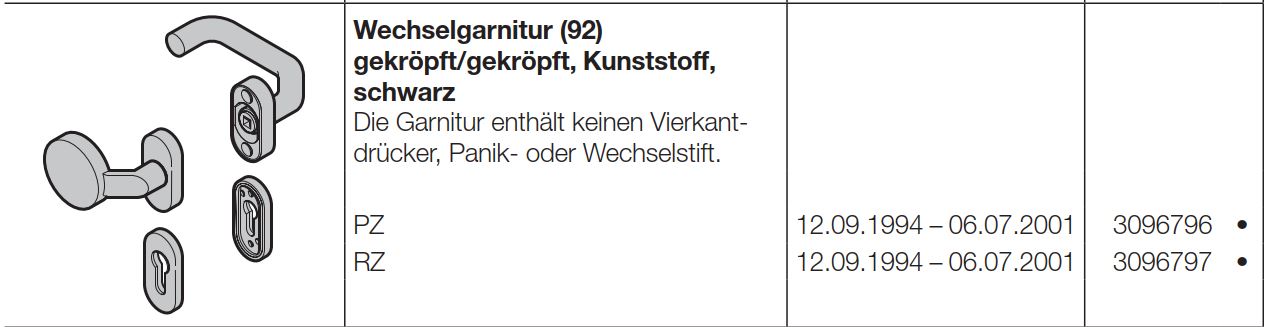 Hörmann Wechselgarnitur 92 gekröpft-gekröpft Kunststoff schwarz, Baureihe 30-40-50-60