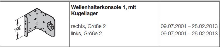 Hörmann Wellenhalterkonsole 1 mit Kugellager rechts-links Größe 2 für die Industrietor Baureihe 30-40-50