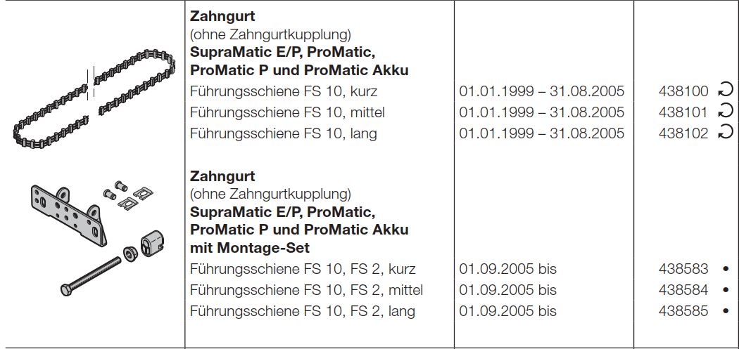 Hörmann Zahngurt ohne Zahngurtkupplung, Führungsschiene FS 10, FS 2, lang
