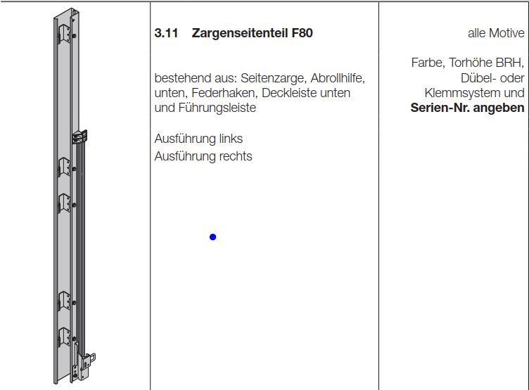 Hörmann Zargenseitenteil F80 Schwingtore für Fertiggaragen, rechts