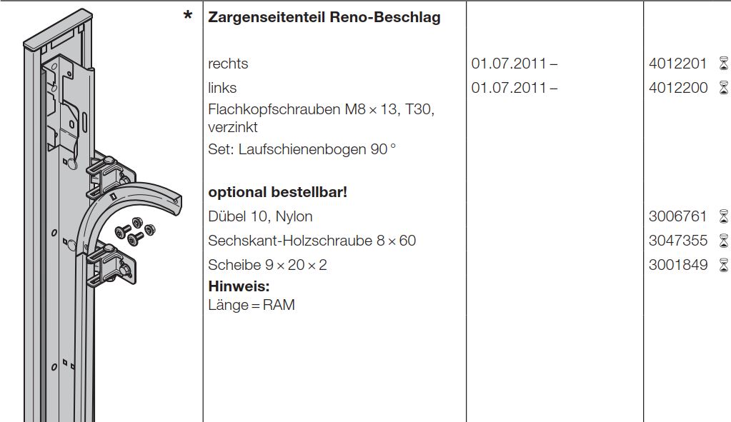 Hörmann Zargenseitenteil Reno-Beschlag, links, für die Baureihe 40
