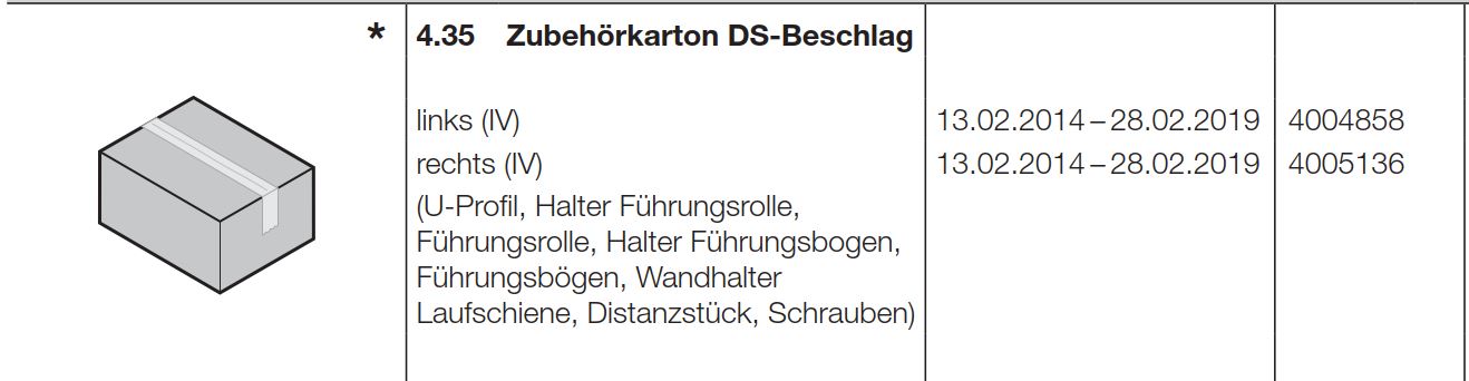 Hörmann Zubehörkarton DS-Beschlag, rechts, (IV) (HST42) BR10, Seiten-Sektionaltor