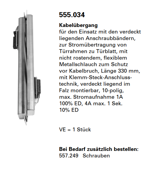 Jansen-Economy 60 RC Türen Kabelübergang für den Einsatz mit den verdeckt liegenden Anschraubbändern, Artikelnummer 555.034