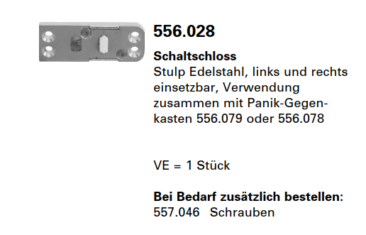 Jansen-Economy 60 RC Türen Schaltschloss Stulp Edelstahl, Artikelnummer 556.028