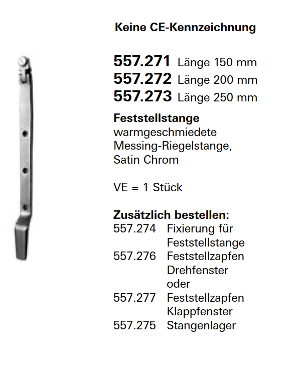 Jansen Janisol Arte 2.0 Feststellstange warmgeschmiedete Messing-Riegelstange, Länge 150 mm, Fensterbeschlag, Artikel Nr.557.271