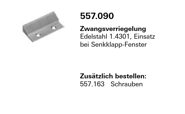 Jansen Janisol Arte 2.0, Zwangsverriegelung, Edelstahl 1.4301, Einsatz, bei Senkklapp-Fenster, Artikel Nr.557.090