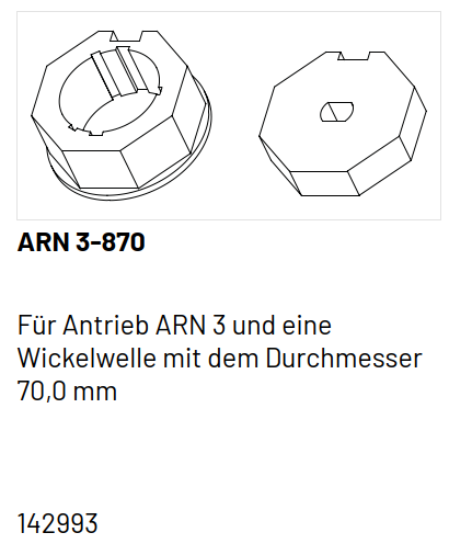 Marantec Adapter ARN 3-870 (achtkantig, 70 mm) für Rohrmotorantriebe sind Einsteckantriebe für Rollgitter und Rolltore
