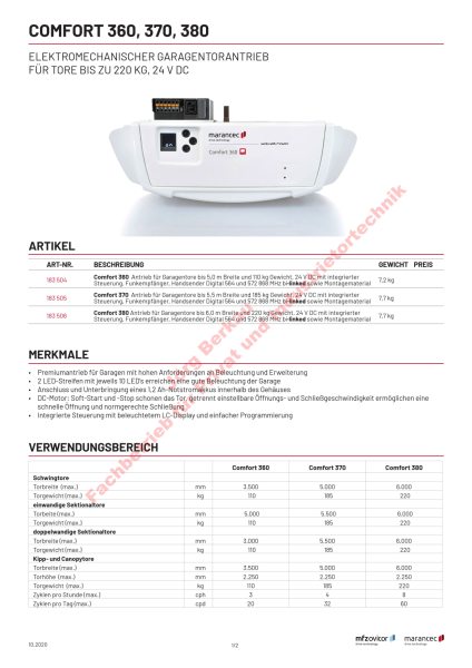 Marantec Comfort 380,1.100N, 868 MHz bi∙linked, Garagentorantrieb, 183506