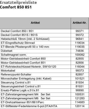 Marantec Deckel, Comfort 850S, 851S, Schiebetorantrieb