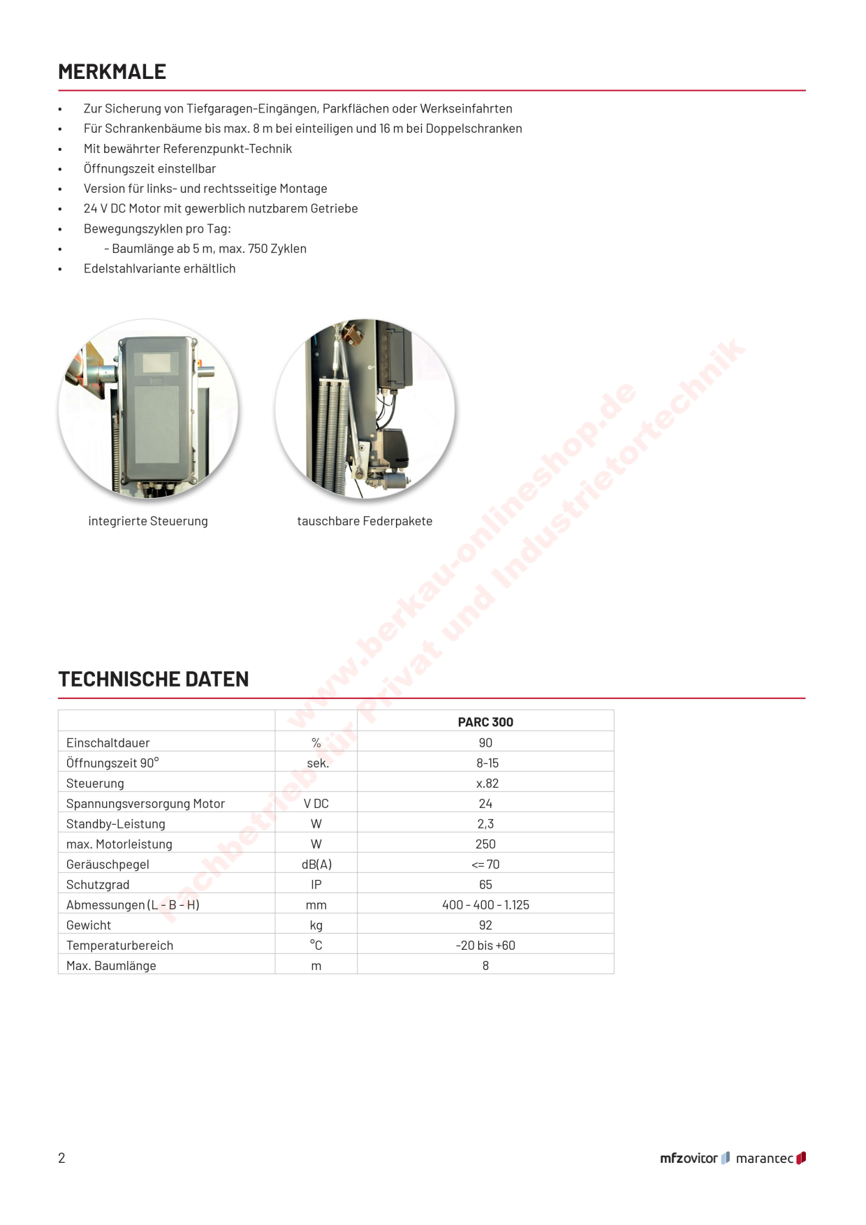 Marantec Zubehör- und Ersatzteile für das Parkschranken-Programm Marantec Parc 100