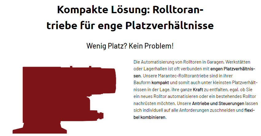 Die Marantec Rolltorantriebe sind in ihrer Bauform kompakt und somit