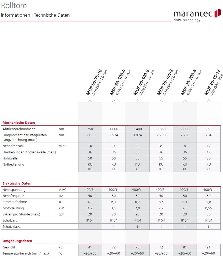 Marantec Ersatzantriebe MDF-MWF für Rolltore